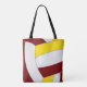 This team colours volleyball shoulder tote bag features the image of an abstractly oversized volleyball that has maroon, gold and white panels, upon which you can customise the coach's name, team name and mascot name and sports season year/years - by katz_d_zynes