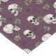 Hand-drawn in black ink, this elegant Halloween tablecloth features a beautiful pattern of skulls, roses and spiderwebs in cream and blush tones, all against an elegant maroon background.