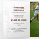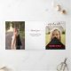 Elegant script announces your graduate over your favourite senior photo on the front. Block for their name on the front, and all the ceremony details inside along with two more pictures. Space on the back for a thank you message to friends and family. Design available in school colours of red, orange, purple, green, blue, burnt orange, maroon, and black. Matching products available.