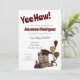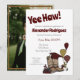Yee haw! They're graduating and it's time to celebrate. This cute card includes a grouping of a cowboy boot topped with a graduation cap and surrounded with books, balloons, and that all-important diploma. Perfect for announcing their graduation ceremony or inviting people to the party to celebrate. Add your favourite photo on the back. Available in a neutral black along with the colours of major Texas schools. Matching products available.