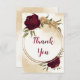 Beautiful wedding thank you card featuring maroon and beige gold flowers with green leaves .