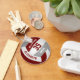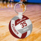 This sporty volleyball themed keychain for girls or boys features a realistic looking maroon, grey and white volleyball upon which you can customise the player's name & jersey number plus school or club name and mascot name in a varsity letter style font - by katz_d_zynes