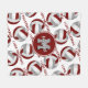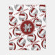 This volleyball themed fleece blanket features a mirrored pattern of volleyballs with maroon, grey and white panels and the sporty font text "I love volleyball" in maroon that stretches between the angled rows of volleyballs - athlete name and monogram can be personalised on the large overlying circle pendant - background is customisable white - easily delete the "I love volleyball" text lines, if desired, or replace the monogram with the player's varsity letter or jersey number - by katz_d_zynes