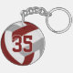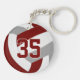 This sporty volleyball themed keychain for girls or boys features a realistic looking maroon, grey and white volleyball upon which you can customise the player's name, jersey number and court position, plus school or club name and mascot name in a varsity letter style font - by katz_d_zynes