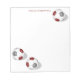 This soccer themed notepad for a soccer coach or athlete features 3 tiny maroon, grey and white soccer balls that appear to have stopped rolling right on the notepad - personalise with the coach's or athlete's name - by katz_d_zynes