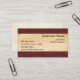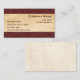 Professional and stylish business card with maroon leather-look top and bottom border on parchment graphic background.