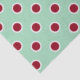 Wrap your stocking stuffers and line your gift bags and boxes with polka dot tissue paper. Maroon polka dots with white outlines add playfulness to a mint green background. The geometric pattern is textured to look like fabric.