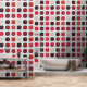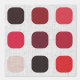 This design features a modern textured geometric motif with black, dark red, maroon, magenta, pink, and beige rounded squares on an ivory white coloured backdrop. The pattern is both ornate and elegant, exuding a funky hipster essence. It's a sophisticated and chic design that represents eclectic minimalism, ideal for artistic interior designers, home decor lovers, trendsetters, and aficionados of vintage, retro, or abstract digital geometric patterns. This ornate yet trendy hipster pattern is versatile and offered on a range of contemporary home decor products, suitable for enhancing the atmosphere of various spaces like master bedrooms, kitchens, living rooms, man caves, college dormitories, condominiums, studios, or apartments.