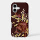 Floral phone cases are always beautiful, but this updated version is a complete stunner! The maroon red rose and leaves are lined in glittery gold. More gold leaves with star shine sparkle surround the rose. Your two letter monogram is in matching gold at the left. Everything is placed on a dark purple red background, which makes the image seem even brighter. Very pretty!