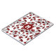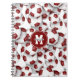This soccer themed spiral notebook features a pattern of randomly arranged maroon and white soccer balls in varying sizes turned every which way on a white background - player name and monogram or jersey number are customisable - by katz_d_zynes