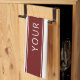 Maroon stripes with your name personalised kitchen towels. Maroon centre stripes with your name text field in white and with maroon outer striped panels on a white background.