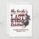 Yee haw!!! It's time to celebrate one last time before this cowgirl gets hitched! It's the bride's last ride before she settles down, also known as a bachelorette or hen party. Design features a cowgirl racing on her horse with distressed western and fat script text and stars. Perfect for a western or country themed event. Shown in Aggie maroon. Also available in a combination of pinks, state flag blue and red, and burnt orange. Matching products available.
