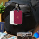 Luggage tag with a solid maroon (# 8A1538) backdrop with a white Q letter.It refers to the Qatai flag's colos.Modern and minimalistic design by Alma Wad.Add your monogram to make it uniquely yours.