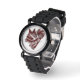 Great looking sporty cheerleader's watch with maroon and silver graphic of a cheerleader's uniform, pom pom, and megaphone. Graphic text reading Cheer runs across the uniform and white custom text, on the megaphone is ready to personalise with your favourite cheerleader's name. Makes a great gift idea.