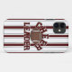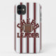 Cheerleader's iPhone 5 case done in maroon, white, and silver tone stripes. Graphics of a football and maroon graphic text reads CHEER Leader. Customise to add any text you want. Great gift idea to your favourite spirit leader.