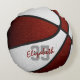This basketball themed pillow for girls or boys features the realistic image of a basketball that has alternating maroon and white recolored panels - personalise with player name in an "autograph" style font overlying the athlete's jersey number - by katz_d_zynes