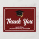 This modern maroon and white custom graduation thank you postcard features classy handwritten thanks above your high school or college name for the class of 2025. Customise with your name under the black grad cap for great personalised graduate thank you postcards.