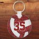 This maroon and white girls' volleyball keychain with custom school team name features a floral kaleidoscopic pattern blended with the volleyball's maroon panels on the front and a simple white volleyball on the back - personalise with her name, team name and jersey number - by katz_d_zynes