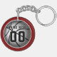 Maroon, White, Black and Silver Custom Basketball Keychains in YOUR TEAM COLORS for boys and girls. Great gift ideas for basketball players. You, or CALL Designer Linda: 239-949-9090 can CHANGE the Burgundy / Maroon, White and Black Background and Text to Your Team Colours. Designer Linda can also CHANGE the Silver Basketball, circular borders, design, product and all colours.