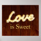Love is sweet, written in vintage marquee lights decorate this poster on a rustic barn board background. This makes the perfect decoration for the rustic, country or barn wedding dessert table. Scroll down to see the coordinating wedding collection.