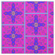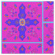 Fabric with Marrakesh Arabesque inspired w/ eggs repeat bright, with ribbon eggs bright art motif elements inspired by the colours and designs of Marrakesh, Morocco, in pink, yellow, bright blue, purple, floral petal medallion, dangling jewels, columns, eggs with a circling ribbon- art by Kristie Hubler.