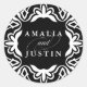 Seal your wedding invitation envelopes, favours and more with our elegant Moroccan inspired stickers in classic black and white. Round design features your names connected by decorative script and surrounded by a geometric border in white on a rich black background. Coordinates with our Marrakesh wedding invitation collection in black.
