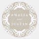 Seal your wedding invitation envelopes, favours and more with our elegant Moroccan inspired stickers in navy and white. Round design features your names connected by decorative script and surrounded by a geometric border in white on a sandy tan beige background. Coordinates with our Marrakesh wedding invitation collection in linen greige.
