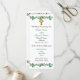 Marriage ceremony program Irish theme. Can also be used for dinner menu for the reception with green roses and shamrock trellis custom design.