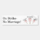 Marriage strike bumper sticker on white background with "On Strike-No Marriage!" text and three picket signs