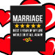 Funny 1st wedding anniversary gift for happily married couples that would give their marriage to their husband or wife a 5 star rating! Perfect for a married couple celebrating 1 year of marriage with a 1st wedding anniversary party! Features 'Marriage - Best 1 Year of My Life. Would Do It All Again!' cute marriage anniversary quote & 5 star rating w/ wedding rings & hearts graphics. Great way for the happily married couple to always remember their 1st wedding anniversary!