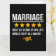 Funny 52nd wedding anniversary gift for happily married couples that would give their marriage to their husband or wife a 5 star rating! Perfect for a married couple celebrating 52 years of marriage with a 52nd wedding anniversary party! Features 'Marriage - Best 52 Years of My Life. Would Do It All Again!' cute marriage anniversary quote & 5 star rating w/ wedding rings & hearts graphics. Great way for the happily married couple to always remember their 52nd wedding anniversary!