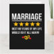 Funny 68th wedding anniversary gift for happily married couples that would give their marriage to their husband or wife a 5 star rating! Perfect for a married couple celebrating 68 years of marriage with a 68th wedding anniversary party! Features 'Marriage - Best 68 Years of My Life. Would Do It All Again!' cute marriage anniversary quote & 5 star rating w/ wedding rings & hearts graphics. Great way for the happily married couple to always remember their 68th wedding anniversary!