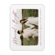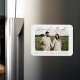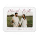Celebrate your first Christmas as a married couple with our Married and Bright holiday photo magnet! The magnet features "Married & Bright" in a cranberry modern hand-lettered script. Your horizontal wedding photo is displayed with a white rough edge border. Personalize the magnet by adding a custom greeting with your names shown below.