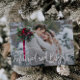 Elegant and stylish holiday 2-photo card for the newlyweds celebrating their first Christmas together as husband and wife featuring a hand lettered script with swirl that says "Married and Bright." There is also snow and snowflakes around the typography text. Customize this product by adding the couple's pictures and names. The message on the back of the card is editable as well.