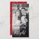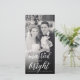 This modern and simple 8"x4" holiday/christmas wedding announcement card features the word 'Married and Bright' in a trendy calligraphy script overlaying a full bleed photo. The back of the card is blank for your own message.