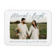 Celebrate your first Christmas as a married couple with our Married and Bright holiday photo magnet! The magnet features "Married & Bright" in a navy modern hand-lettered script. Your horizontal wedding photo is displayed with a white rough edge border. Personalize the magnet by adding a custom greeting with your names shown below.