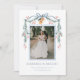 Celebrate your first holiday season as newlyweds with this charming “Married and Bright” photo card! Your favourite wedding photo takes centre stage, beautifully framed by hand-painted watercolor details—pine boughs, holly, golden bells, and a festive bow—for a look that’s both romantic and seasonal.