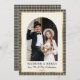 Married and Merry Arch Photo Black Gold Plaid Holiday Card