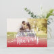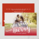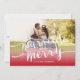 Newlyweds. Send out your First Christmas holiday greetings to your loved ones with this versatile, simple holiday photo card with the words "Married and Merry" written in a white script font text overlay with a red ombre effect over your favourite wedding photo. Design by ELKE CLARKE© FOR MONOGRAMGALLERY. Replace sample photo with your own. Red and white heart pattern on back of card can be deleted in edit menu. Other colours available in store or on request.