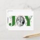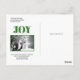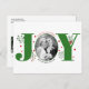 Married and Merry green JOY Christmas holiday photo Postcard. Send this postcard for your first Christmas as Mr. and Mrs. It showcases the word "JOY" in green with red berries and greenery while instead of the letter "O" there is your photo.