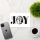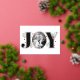 Married and Merry JOY First Christmas holiday photo real rose silver foil card. Send this card for your first Christmas as MR and Mrs. It showcases the word "JOY" with red berries and greenery while instead of the letter "O" there is your photo.