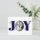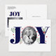 Married and Merry navy blue JOY Christmas holiday photo Postcard. Send this postcard for your first Christmas as MR and Mrs. It showcases the word "JOY" with red berries and greenery while instead of the letter "O" there is your photo.