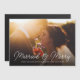 Affordable custom printed magnetic photo cards with simple templates for customisation. This modern design has a chic typography overlay on your photo. The wording says "Married & Merry". Personalise it with your wedding photo and custom text. Use the design tools to edit the text, add more photos and create a unique one of a kind wedding photo holiday card, perfect for newlyweds!