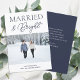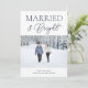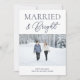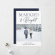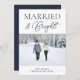 Married and Bright Blue Script Modern Photo Christmas Holiday Card. Send customisable and personalised holiday greetings to friends, colleagues and family in simple, chic, elegant and modern photo design festive, natural minimalist style cards! Below the calligraphy features your custom greeting message in modern typography.