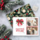 Married & Bright Red Bow Holly Newlywed 2 Photo Holiday Card