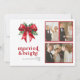Married & Bright Red Bow Holly Newlywed 3 Photo Holiday Card