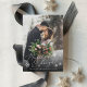 Elegant holiday photo cards for newlyweds feature a favourite vertical or portrait orientated wedding photo with "married & bright" in white calligraphy script adorned with snowflakes. Personalise with your names or custom greeting beneath. Perfect for sharing a wedding photo for your first married Christmas.