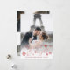 Elegant holiday photo cards for newlyweds feature a favourite vertical or portrait orientated wedding photo with "married & bright" overlaid in festive red calligraphy script adorned with snowflakes. Personalise with your names or custom greeting beneath. Perfect as a combination Christmas card and thank you card at your first married Christmas, you can add four additional photos to the back, along with a custom pre-printed message of thanks to your guests.