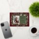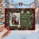 Introducing our enchanting winter wedding foil photo announcement card, where timeless elegance meets the beauty of the season. The rich burgundy background, artfully distressed with soft white accents, sets a captivating tone for your special day. In the dark sage green text area, your wedding details will shine, surrounded by a delicate cream frame that adds a touch of refinement. Embrace the spirit of winter with a breathtaking frame of lush greenery, featuring holly adorned with rich red berries, mistletoe with its delicate white berries, and the timeless allure of green pine. This winter wonderland-inspired design captures the essence of the season and invites your guests to celebrate your love in a setting that exudes natural grace and festive charm. Created by Simply Farmhouse Press.