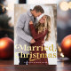 Cherish the joy of your newlywed bliss with our captivating First Christmas as Mr. and Mrs. Photo Card. Immortalise the enchantment of this special season in a breathtaking photograph featuring you and your beloved, adorned with Married Christmas in traditional typography in real foil for an added touch of sophistication. Share your warmest wishes and the magic of your first Christmas as a married couple with a heartfelt message. Turn to the back, and you'll unveil a minimalist design in deep red, holiday-inspired colours that perfectly complements the love you share. Share this beautiful card with friends and family, capturing the happiness of your journey together in a card that mirrors the beauty of your shared moments. Explore our extensive selection of related and coordinating products available in our store, allowing you to infuse every corner of your celebrations with the same warmth and style that define your love story. Visit our store today and let the enchantment of this season commence!